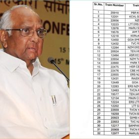 - तळकोकणात थांबा नसणार्या त्या ३२ गाड्यांना थांबा द्यावा; शरद पवार यांची रेल्वेला विनंती